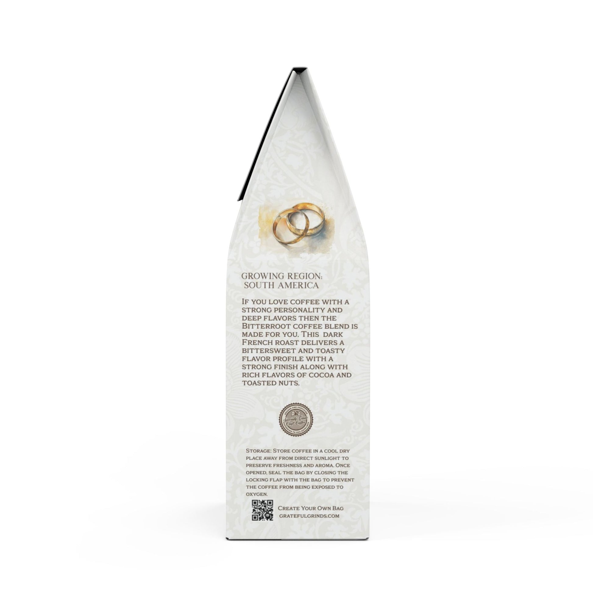 If you love coffee with a strong personality and deep flavors then the Bitterroot Coffee Blend is made for you. This 12oz package features a Dark French roast, delivering a bittersweet and toasty flavor profile with a strong finish along with rich flavors of cocoa and toasted nuts. Sourced from South America, this blend is meant to be enjoyed by brewing in your drip coffee maker, French press, or percolator. Available in whole bean and ground options. Roasted with care in the USA from ingredients sourced worldwide.