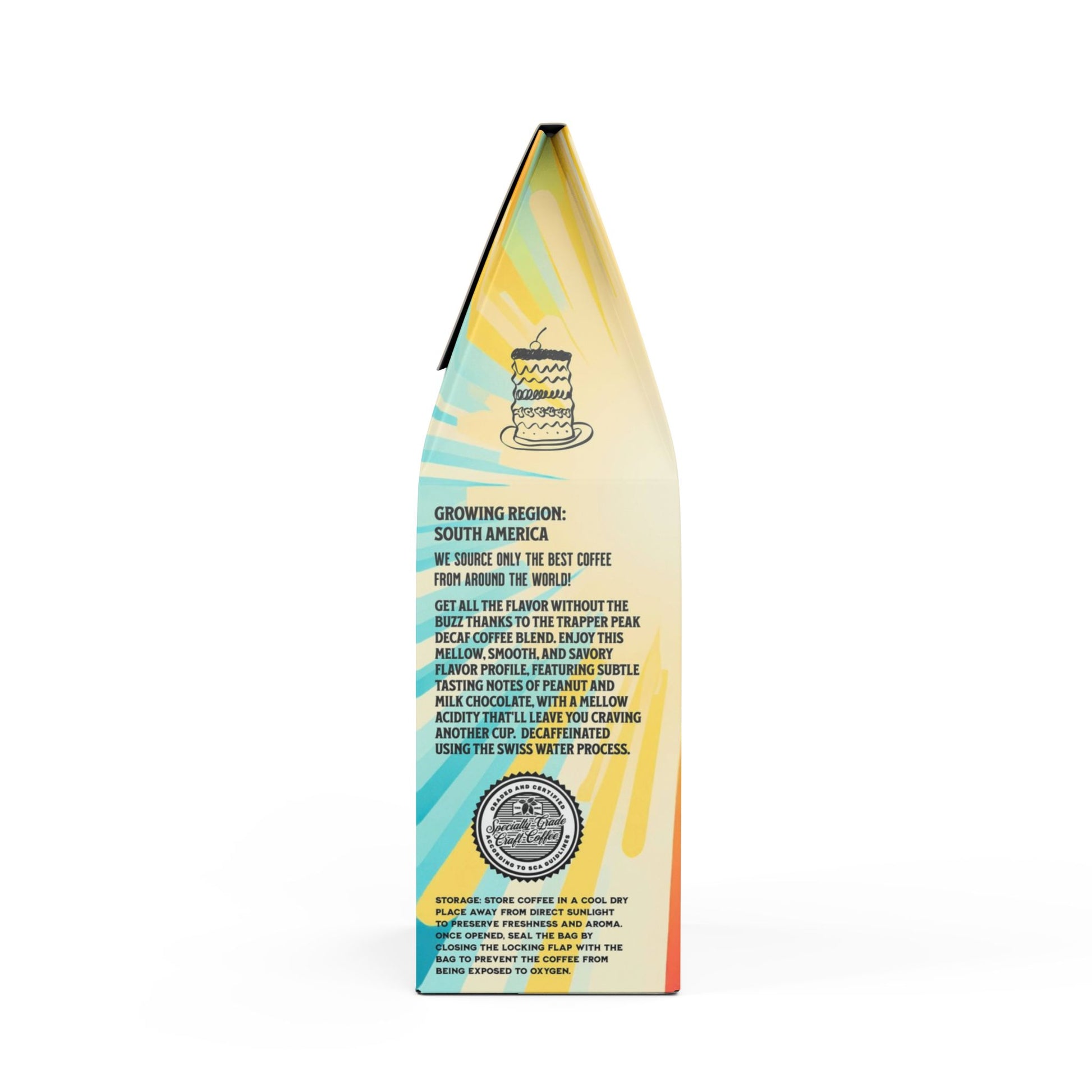 Get all the flavor without the buzz thanks to the Trapper Peak Decaf Coffee Blend. This 12oz pack boasts a mellow, smooth, and savory flavor profile, featuring subtle tasting notes of peanut and milk chocolate, with a mellow acidity that'll leave you craving another cup. Sourced from the sunny slopes of South America and decaffeinated using the Swiss Water process. Brew it up in your drip coffee maker, French press, or percolator. Available in whole bean and ground options to match your equipment. Roasted in the USA.
