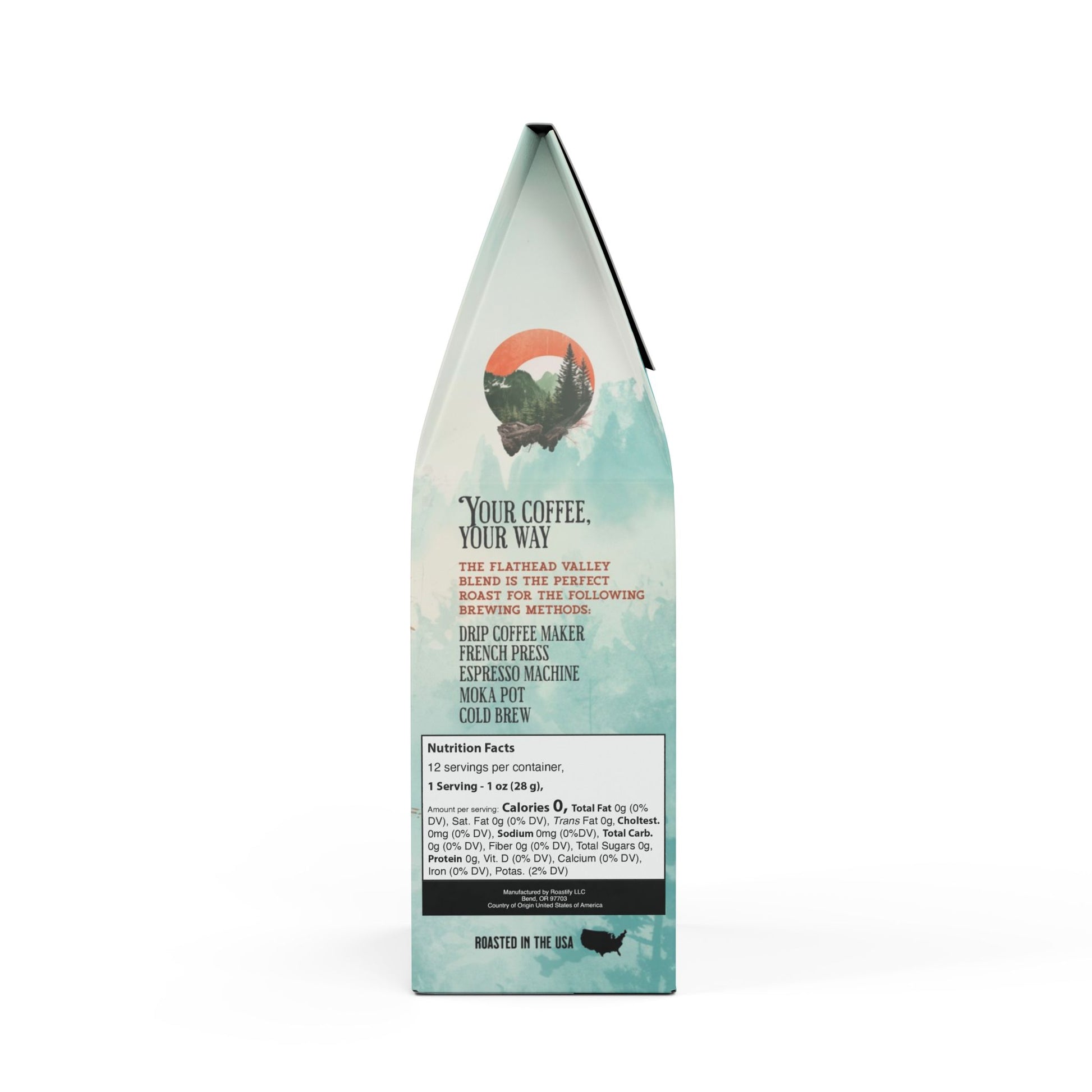 Meet the Flathead Valley Coffee Blend, a bold and rich brew to kickstart your day! This 12oz pack features a medium-dark roast, delivering a deep body with notes of baker's chocolate and caramelized sugar. Meanwhile, the body tastes rich with warm spice, caramel, and dark chocolate-tasting notes that'll leave you craving more. Sourced from Central America, it's perfect for brewing in your drip coffee maker, French press, Moka Pot, or percolator, or enjoying as a refreshing cold brew. Whether you prefer whole bean or ground, we've got you covered. Roasted with care right here in the USA.