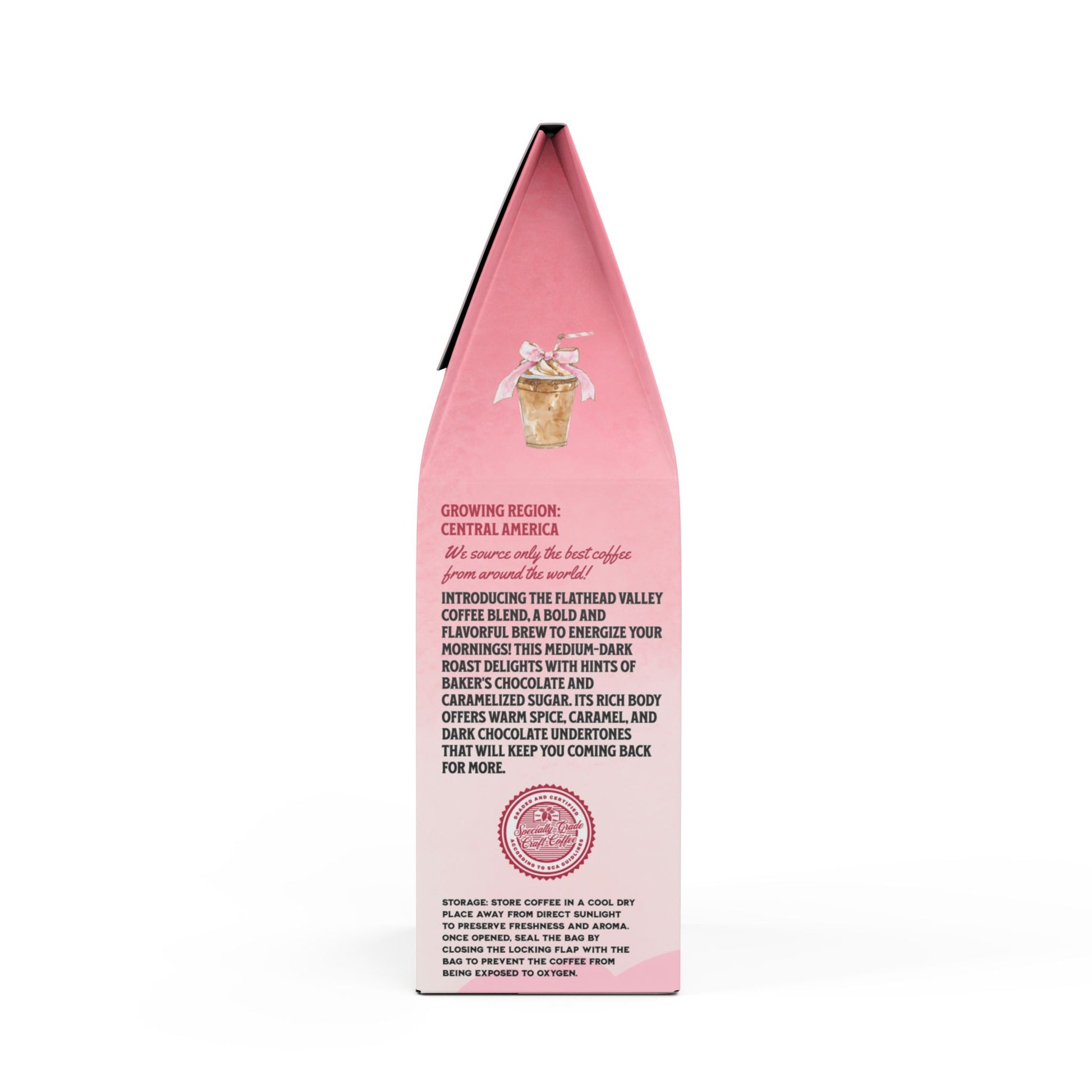 Meet the Flathead Valley Coffee Blend, a bold and rich brew to kickstart your day! This 12oz pack features a medium-dark roast, delivering a deep body with notes of baker's chocolate and caramelized sugar. Meanwhile, the body tastes rich with warm spice, caramel, and dark chocolate-tasting notes that'll leave you craving more. Sourced from Central America, it's perfect for brewing in your drip coffee maker, French press, Moka Pot, or percolator, or enjoying as a refreshing cold brew. Whether you prefer whole bean or ground, we've got you covered. Roasted with care right here in the USA.