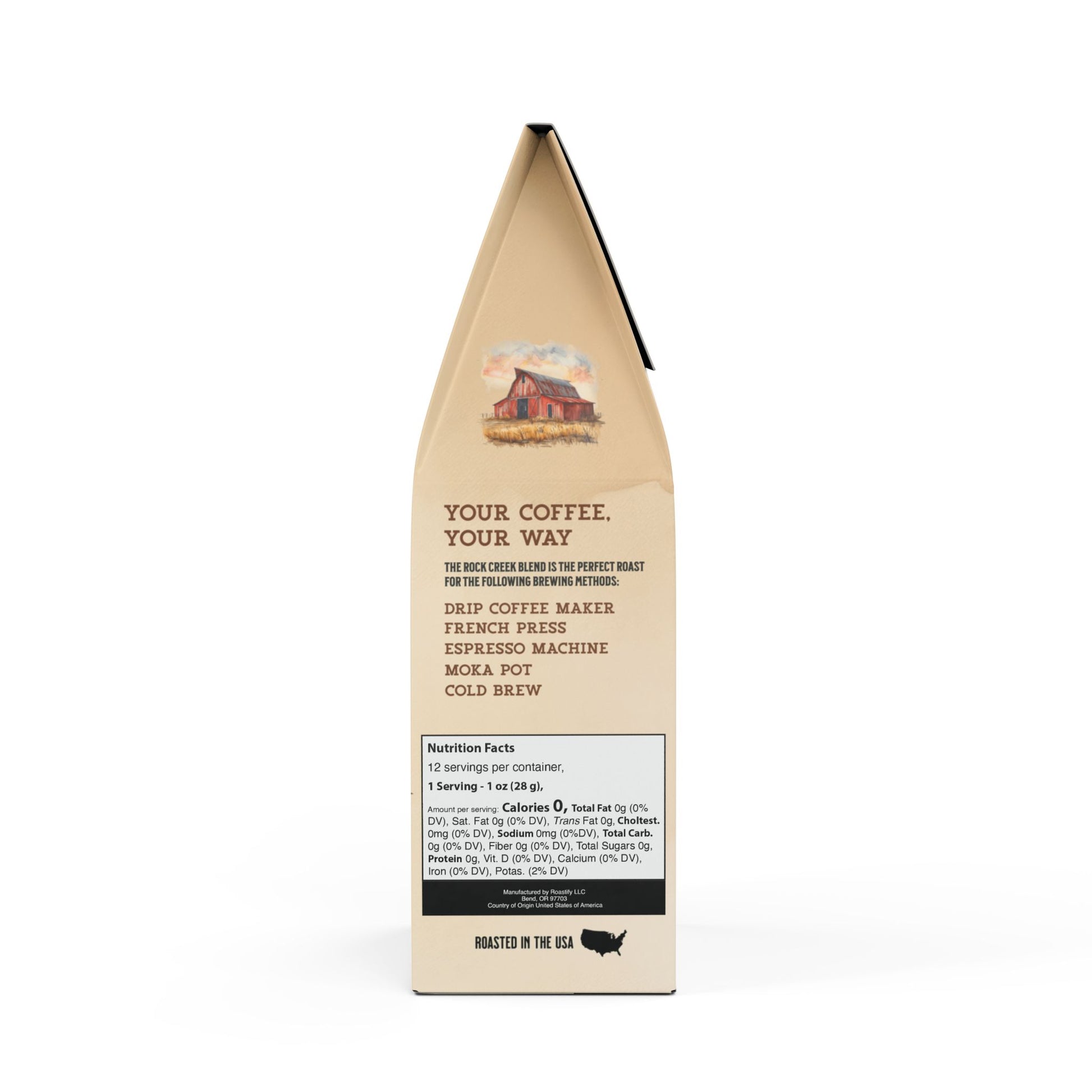 The Rock Creek Coffee Blend was made to be your new daily pick-me-up! This 12oz pack boasts a medium roast, delivering a delightful fusion of toffee, dark chocolate, and citrus flavors. With tasting notes reminiscent of sweet orange, chocolate, and brown sugar. Sourced from the lush region of Central America, this blend is perfect for brewing in your drip coffee maker, pour-over, espresso machine, Moka Pot, or even a refreshing cold brew. Whether you prefer whole bean or ground, we've got you covered.