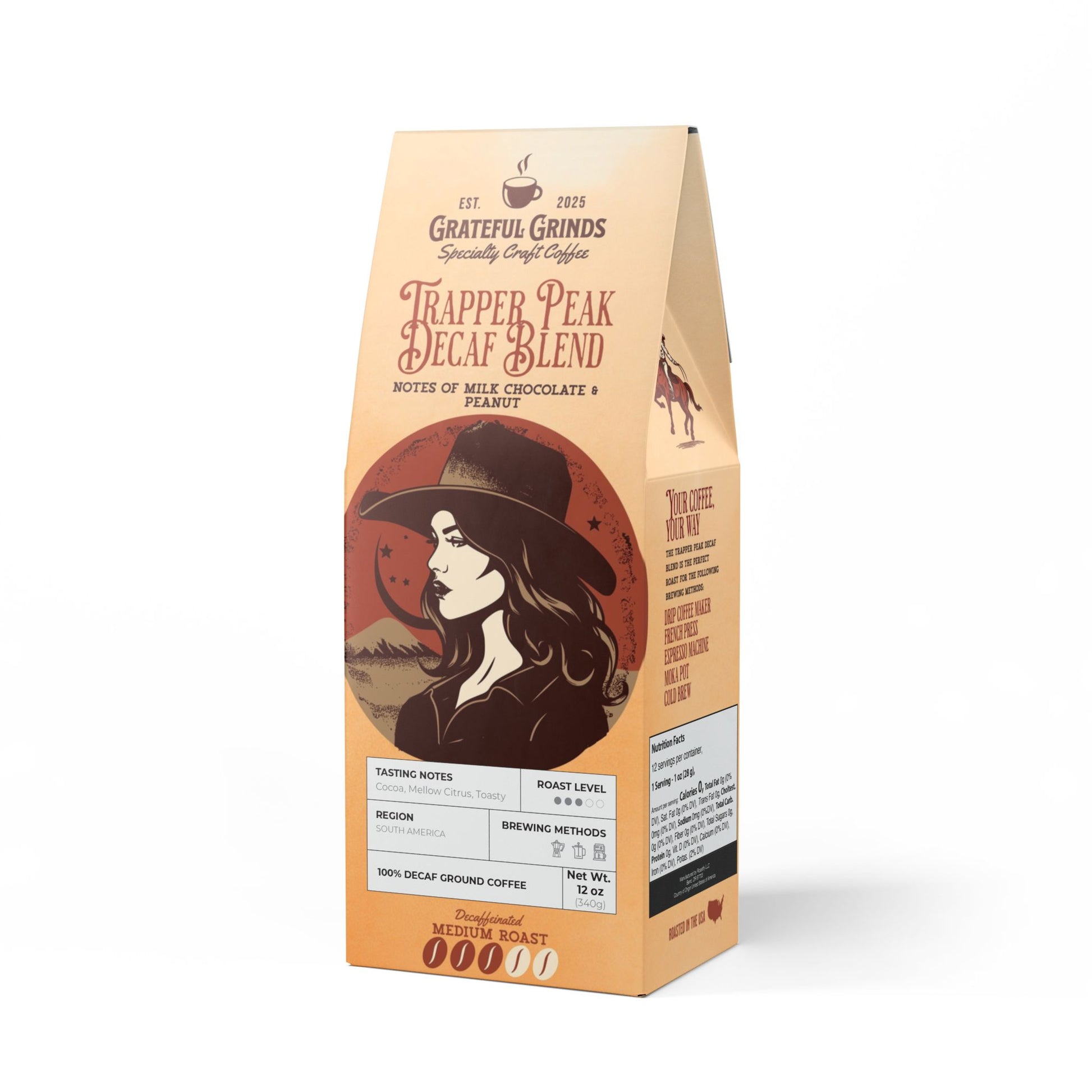 Signature Trapper Peak Decaf Coffee Blend Cowgirl Design (Medium Roast)